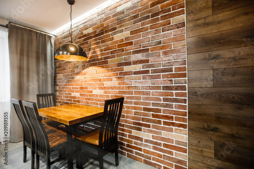 Dark Brown Modern Kitchen Interior Brick Wall And Ceiling Lamp Grunge Retro Vintage Interior Stock Photo Adobe Stock from as2.ftcdn.net Get free shipping on qualified dark, brown kitchen cabinets or buy online pick up in store today in the kitchen department. For chefs or other people who love all of these colors. Brown kitchen in the interior looks stylish and. All in all, this feels rich and warm. Kitchen is one of the spaces in the house where you can actually release stress through cooking or preparing desserts! One of the best ways to make your brown cabinetry truly pop is by using gleaming white subway tile on your walls. The master bedroom door is also clad in wenge. White/beige wall + dark brown furniture = contemporary look (suggested for home, office, restaurant etc).